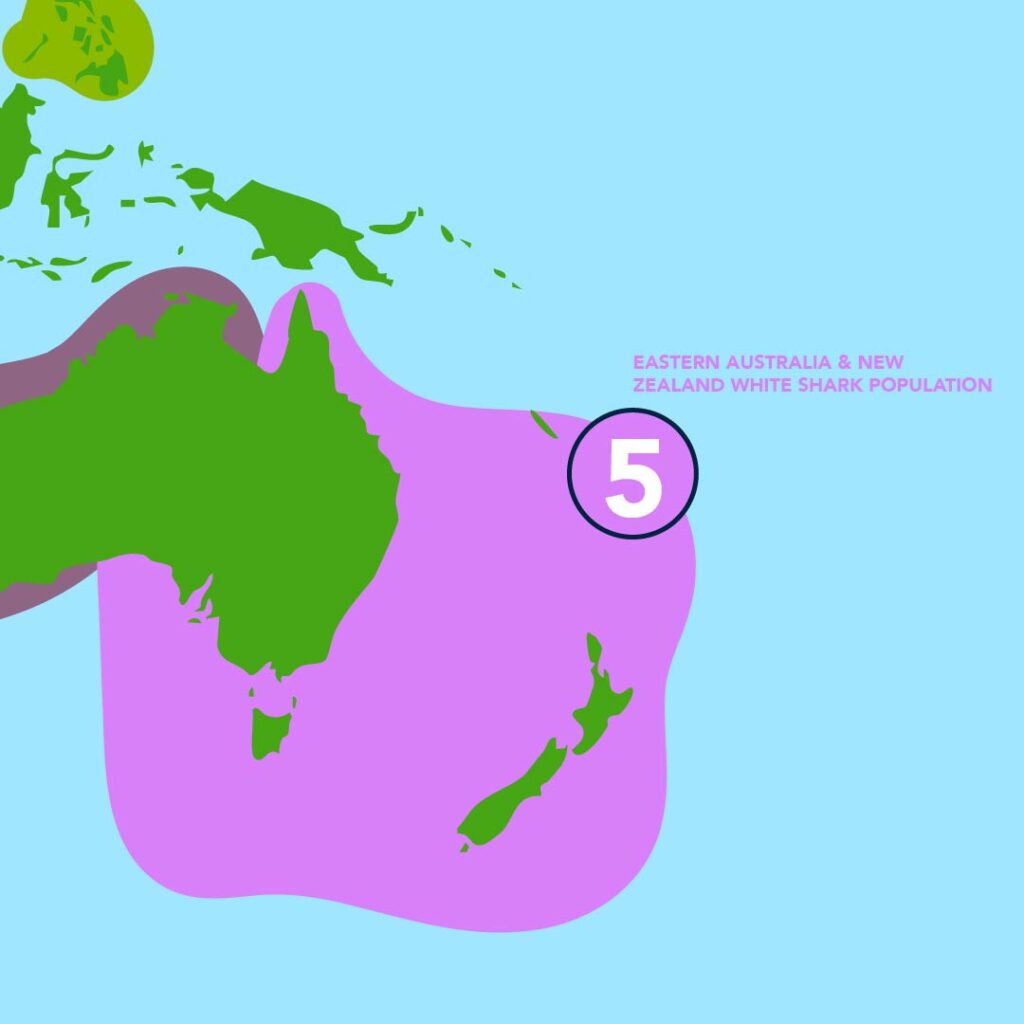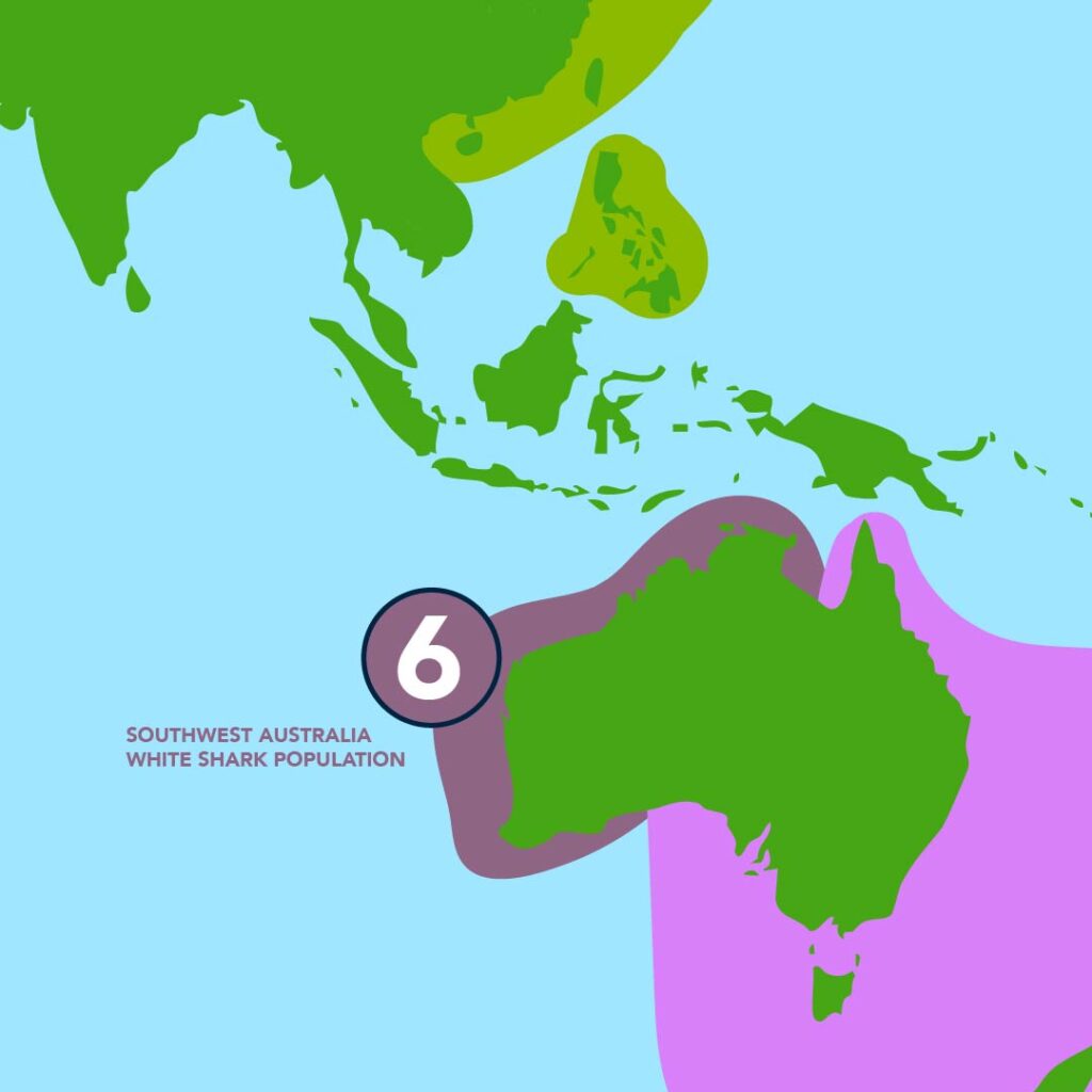 This population ranges from Tasmania to Southern Queensland and east to New Zealand. White sharks here suffered a >90% decline in the 20th century due to targeted fishing and bather protection programs. Modern non-lethal sampling has made it one of the most well-studied populations, but despite protections, historical catch records and genetic studies show no signs of recovery. Continued research is critical to understanding and protecting this vulnerable population.