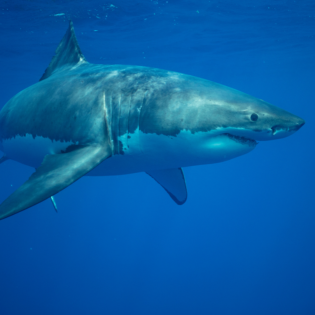 Great Whites can grow up to 20 feet long and weigh over 5,000 pounds. Females are generally larger than males.